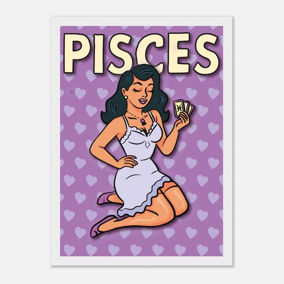 With romantic fish, glittering stars, velvet hearts and moody clouds swirling behind her, this print captures Pisces energy in all its intuitive, emotional, and wildly magical glory.