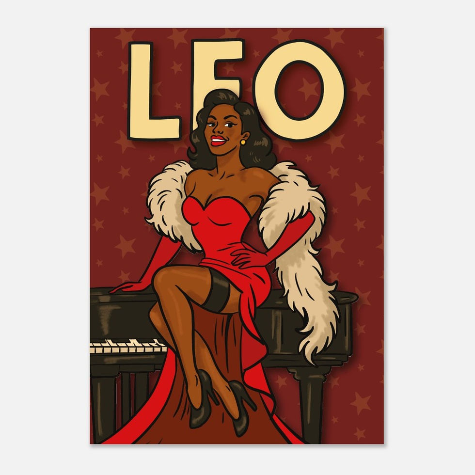 This radiant retro print captures Leo’s signature energy: glamorous, unapologetic, and sparkly enough to cause solar flares. Surrounded by mirrors, gold accents, big hair, and even bigger energy, she’s a living lesson in self-love with a dash of “don’t you wish you were me?”